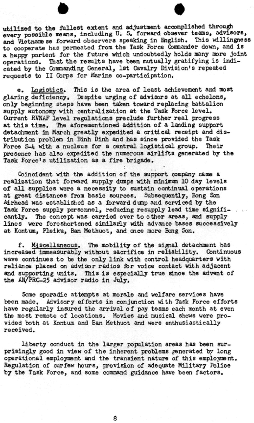 Maj. William G. Leftwich Jr.'s Completion of Tour Report with VNMC, 1965